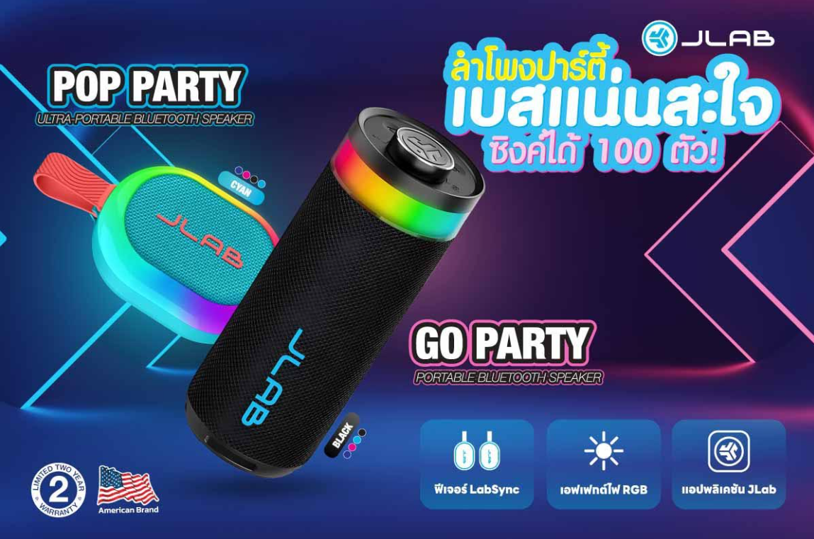 เปิดตัวลำโพงบลูทูธพกพาสองรุ่นใหม่ล่าสุด ได้แก่ JLab Go Party และ JLab Pop Party ที่ออกแบบมาเพื่อยกระดับประสบการณ์ปาร์ตี้ของคุณให้สุดเหวี่ยงยิ่งกว่าเดิม