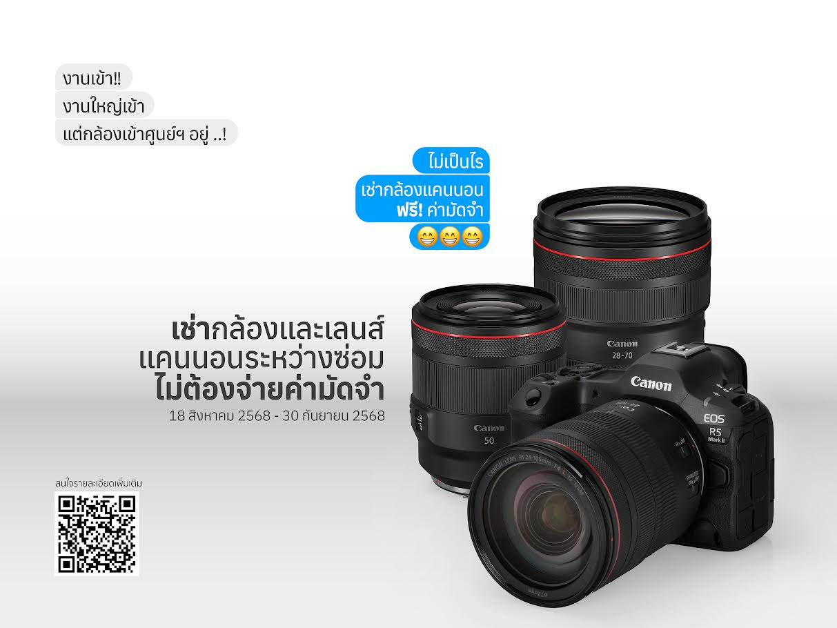 หากกล้องหรือเลนส์ Canon ของคุณกำลังอยู่ในระหว่างการซ่อมที่ศูนย์บริการใหญ่ของ Canon ไม่ต้องกังวลว่างานจะสะดุด เพราะคุณสามารถ เช่ากล้องและเลนส์สำรอง ไปใช้งานชั่วคราวได้แบบ ฟรี! ค่ามัดจำ มูลค่าสูงสุดถึง 67,500 บาท เลยทีเดียว! สิทธิพิเศษนี้ออกแบบมาเพื่อตอบโจทย์ช่างภาพมืออาชีพที่ต้องใช้กล้องอย่างเร่งด่วน โดยเฉพาะสำหรับงานอีเวนต์หรืองานสำคัญที่ไม่สามารถเลื่อนได้ เพียงแค่คุณนำกล้องหลักเข้ารับบริการที่ ศูนย์บริการ Canon สำนักงานใหญ่ และได้รับการอนุมัติซ่อมแล้ว ก็สามารถแจ้งความประสงค์ขอใช้สิทธิพิเศษนี้กับเจ้าหน้าที่ได้ทันที