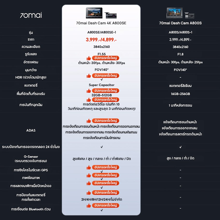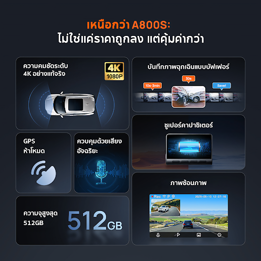 กล้องติดรถยนต์ 70mai Dash Cam 4K A800SE ไม่ได้เป็นเพียงแค่กล้องติดรถยนต์ที่มีความคมชัดระดับ 4K ในราคาที่เข้าถึงได้เท่านั้น แต่ยังเป็นเพื่อนร่วมทางที่มอบความอุ่นใจและไว้วางใจได้ในระยะยาว ด้วยการผสานรวมเอาความคมชัดระดับพรีเมียม ระบบป้องกันภัยอัจฉริยะ และการออกแบบที่กะทัดรัด ใช้งานง่าย ตอบโจทย์ทุกความต้องการของผู้ขับขี่ได้อย่างแท้จริง