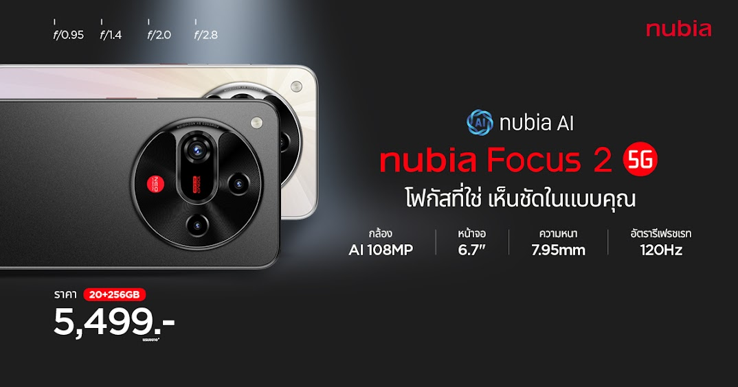 nubia Focus2 5G พร้อมวางจำหน่ายในประเทศไทยแล้ววันนี้ ใน ราคาพิเศษเพียง 5,499 บาท สามารถเป็นเจ้าของได้แล้วผ่านช่องทางออนไลน์และตัวแทนจำหน่ายชั้นนำทั่วประเทศ